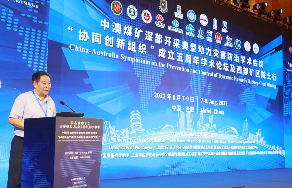 8月8日,由安徽理工大学、合肥工业大学、University of New South Wales、AGH University of Science and Technology、University of Queensland、University of Wollongong等单位发起,联合主办的中澳煤矿深部开采典型动力灾害防治学术会议、“协同创新组织”成立五周年学术论坛在合肥隆重举行。20位中国工程院院士、100多位专家学者和政府企业领导通过线上、线下相结合的方式共聚一堂,共商战略发展大计。此次论坛围绕“探索煤矿深部采动防灾对策,助推能源安全与清洁化利用”主题,共同回顾“协同创新组织”五年奋斗历程,共同展望煤炭安全智能开采领域未来发展的美好前景。