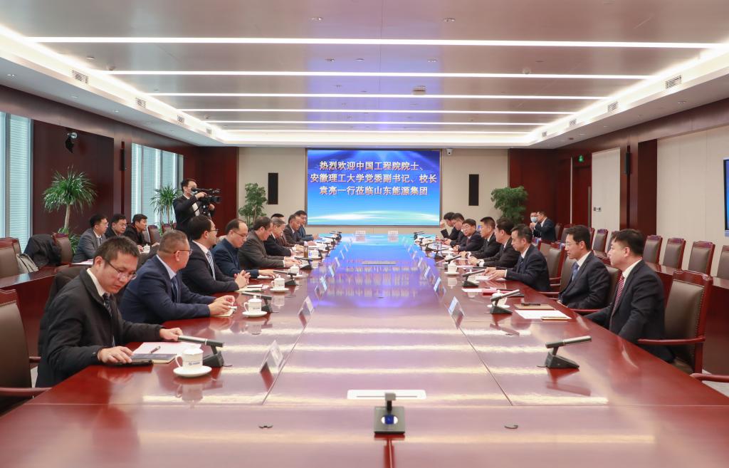 李伟对袁亮院士一行的到来表示热烈欢迎,向学校对山能集团发展给予的支持表示衷心感谢,他简要介绍了山能集团发展历史、改组建设情况和六大主要业务板块,并介绍了集团近年来服务国家、服务山东高质量发展的具体举措。李伟表示,安徽理工大学办学历史悠久、师资雄厚、科研成果丰硕,在能源、安全、爆破、职业安全健康等领域独具特色,拥有一批国家、省部级科研平台,在行业内拥有重要影响力,长期以来,山东能源集团与安徽理工大学建立了良好的合作关系,双方在深部矿井动力灾害、高瓦斯矿井治理,实现煤炭安全高效开采等领域具有良好的互补优势,合作带来新机遇、创新带来新发展,此次签署战略合作协议,既是深入学习贯彻党的二十大精神、推进产学研融合发展的实际行动,也是校企深度融合发展的战略选择,希望双方继续发挥各自特长和资源优势,在重大项目开发、高层次人才培育、科技合作交流及成果转化等方面创造新的成绩,提高科技成果转化和产业化水平,开启校企融合、产教融合发展新篇章。