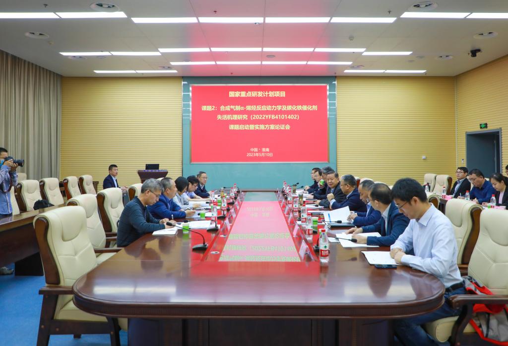 5月10日,学校承担的国家重点研发计划项目课题“合成气制α-烯烃反应动力学及碳化铁催化剂失活机理研究”(2022YFB4101402)启动会暨实施方案论证会在国家重点实验室1号会议室召开。校党委副书记、校长袁亮院士出席会议并致辞。会议邀请中国科学技术大学谢毅院士、南京大学范以宁教授、中国科学技术大学李文志教授、中科院固体物理研究所汪国忠研究员、安徽大学朱满洲教授组成专家组到学校指导。项目首席专家、国家能源集团北京低碳清洁能源研究院门卓武教授参加会议。校科研部负责人主持了启动论证会。