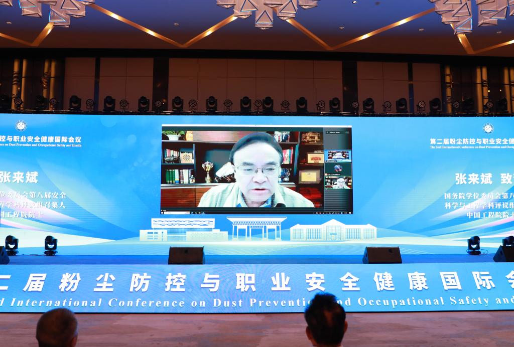 张来斌线上致辞。他对学校事业发展取得的成就表示赞赏,特别是学校近年来锚定“双一流”创建目标、在全国第五轮学科评估中实现了省属高校A类学科零的突破,为近年来省属及至全国行业高校创新发展树立了典范。他指出,职业安全健康关乎广大劳动者身体健康和生命安全,是改善保障民生、平衡社会利益、调节社会关系、规范社会行为的必然要求。数据显示,粉尘已成为危害煤矿安全生产和矿工职业健康的“头号元凶”。他强调,本次会议聚焦粉尘防控与职业安全健康主题,邀请国内外专家、学者共同探讨粉尘防控与职业安全健康领域的新问题、新思想、新方法和新应用,对于学习贯彻习近平总书记关于“人民至上、生命至上”的指示精神,促进粉尘防控与职业安全健康领域的学术交流和科技进步,推动安全科学与工程学科职业安全健康方向的发展,具有非常重要的意义。相信通过资源共享、优势互补,一定能够实现效益倍增、跨越发展,探索出粉尘防控与职业安全健康工作高质量发展新路径。