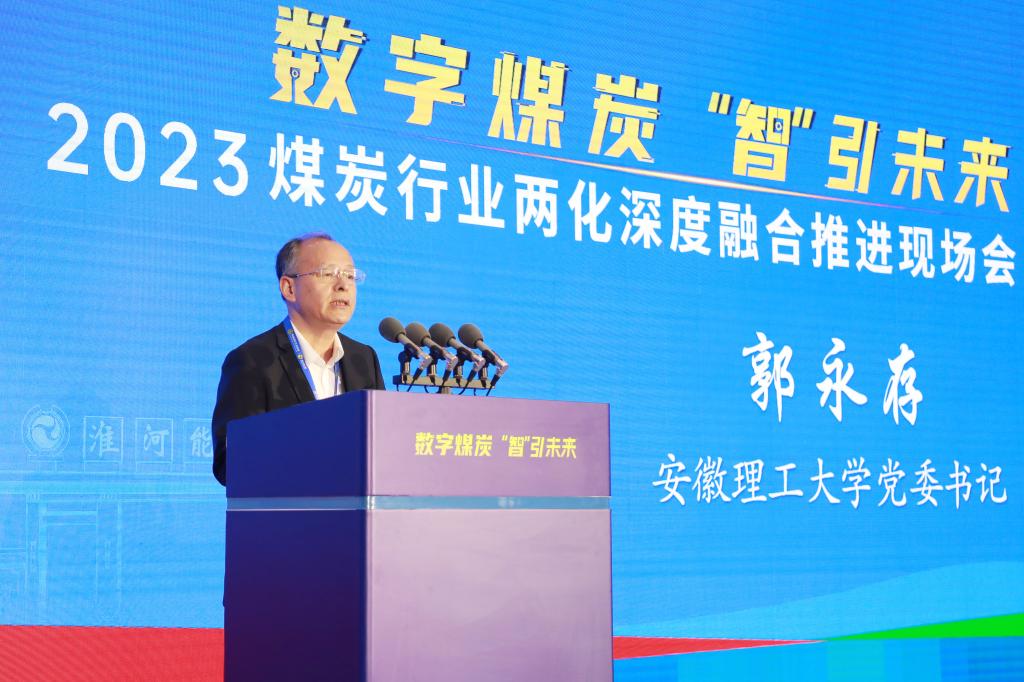 9月26日上午,2023年煤炭行业两化深度融合推进现场会暨“数字煤炭”建设发展论坛在淮南煤矿宾馆召开。中国煤炭工业协会会长梁嘉琨,省人大常委会副主任、党组成员、省总工会主席何树山,国家矿山安全监察局安全监察专员张文杰,淮南市委副书记、市长张志强等出席会议。校党委书记郭永存应邀出席大会并代表承办单位致辞。